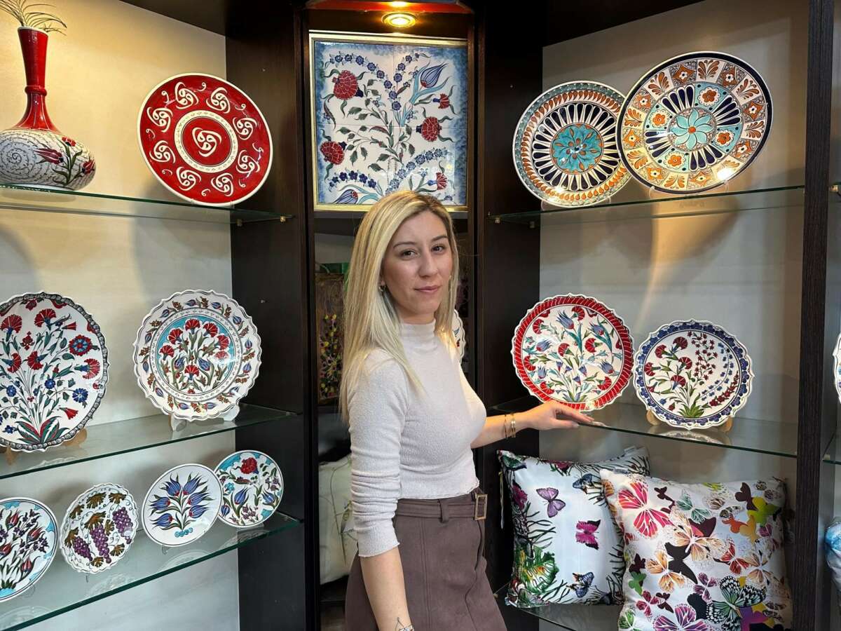 Çini sanatçısı Kübra Göllü ise 10 yıldır çini işiye uğraştığını belirterek, hem lise de hem de üniversitede seramik cam ve çinicilik üzerine eğitim aldığını söyledi.
