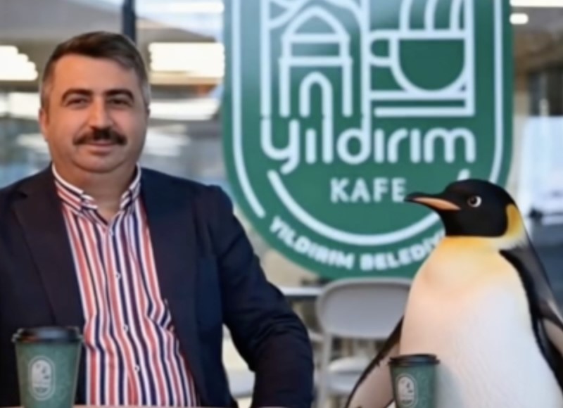 Bursa‘nın Yıldırım Belediyesi de “Nereye gittiğini merak edenler olmuş” ifadesini kullanarak görüntü paylaştı. Görüntüde belediyenin tesislerine ve Belediye Başkanı Oktay Yılmaz ile yan yana penguene yer verildi.