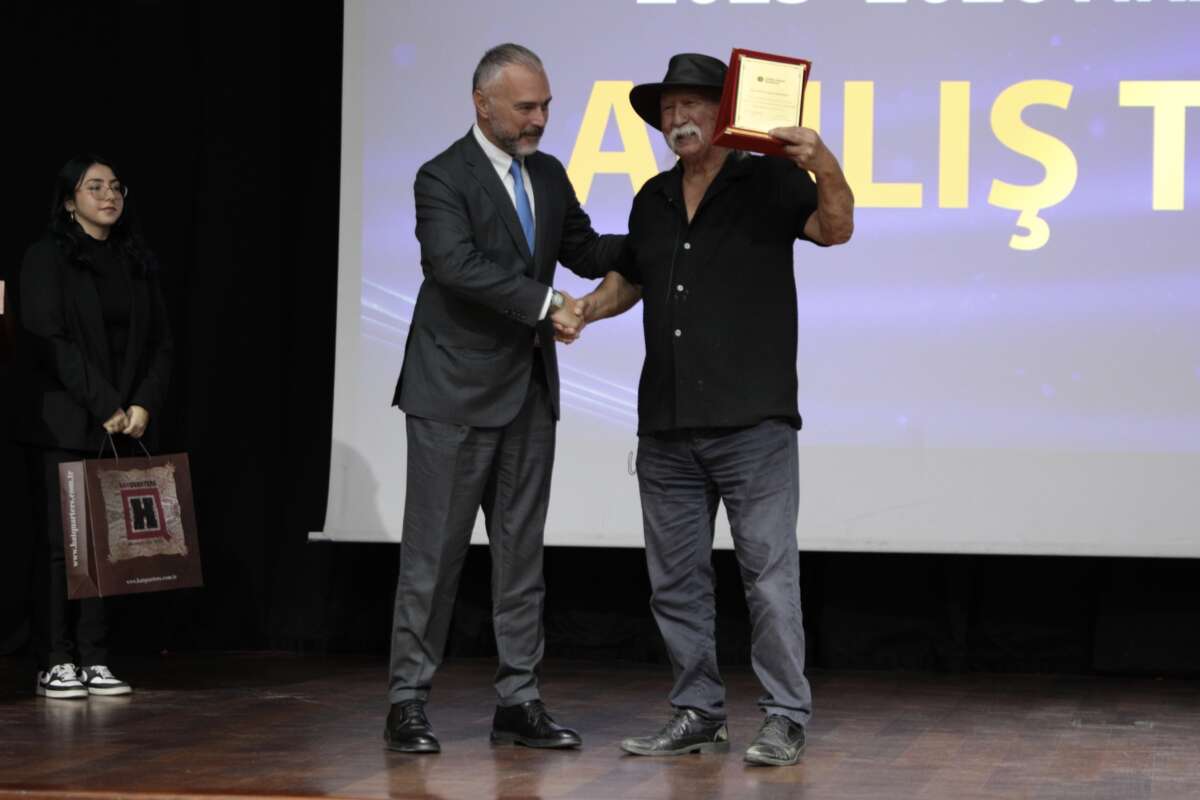 Açılış dersinin ardından Mütevelli Heyet Başkanı Dr. Erkan Çelik, Prof. Dr. Şener Üşümezsoy’a plaket takdim edip şapka hediye etti. Üşümezsoy, öğrencilerin ve akademisyenlerin alkışları arasında hediyesini deneyerek teşekkürlerini iletti.