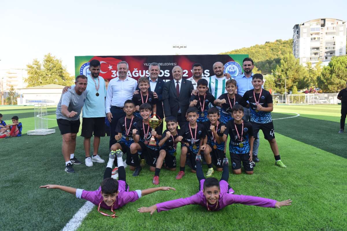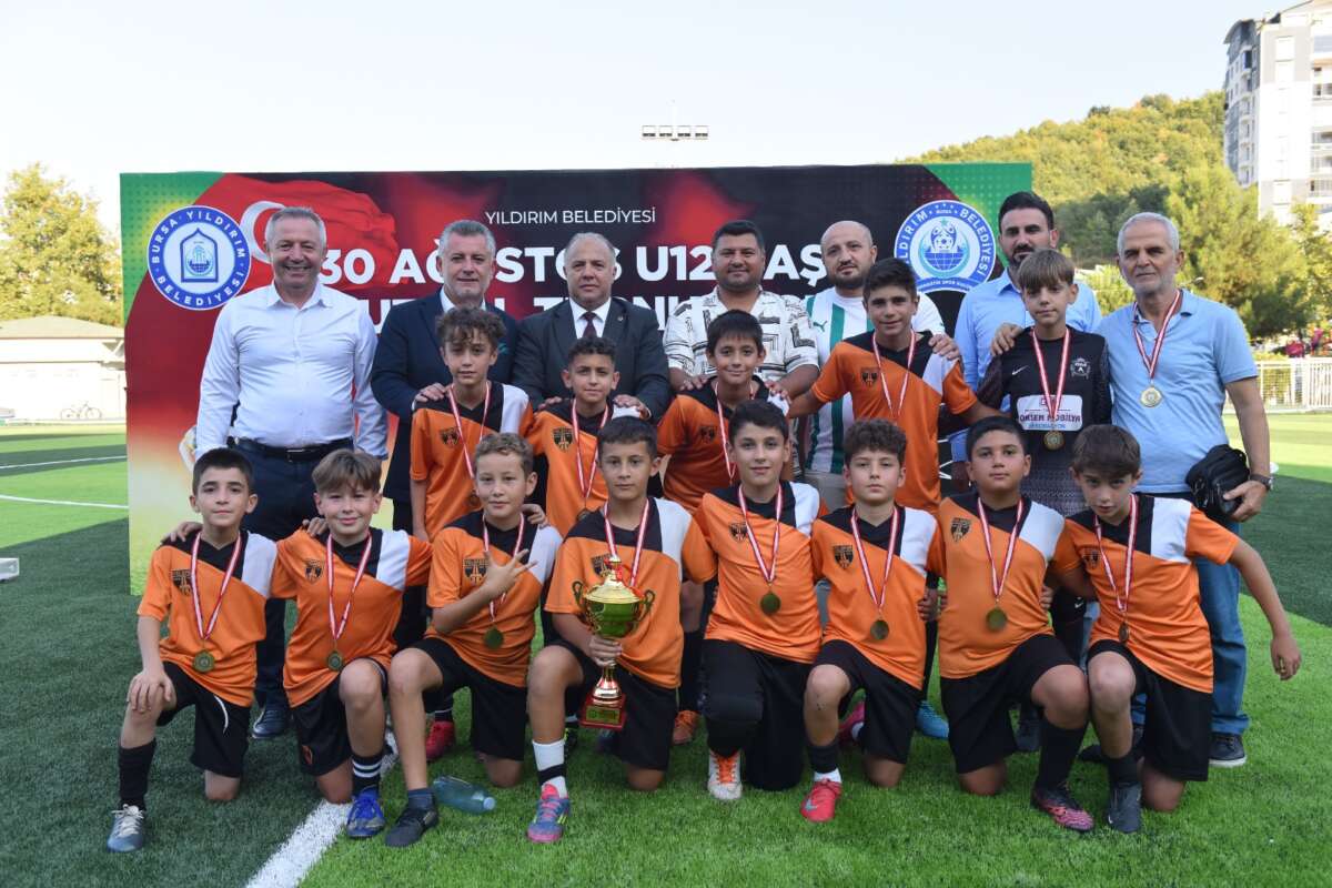 30 Ağustos Zafer Bayramı’nda, spor ve milli bilinci aynı sahada buluşturan Yıldırım Belediyesi, düzenlediği, ‘30 Ağustos U-12 Yaş Futbol Turnuvası’ ile ilçede futbol şöleni yaşattı. Fidyekızık Spor Tesisi’nde düzenlenen turnuvaya 22 takım ve 350 sporcu katıldı. 5 grup şeklinde oynanan turnuva kıran kırana maçlara sahne oldu. Kardeşlik, dayanışma ve centilmenlik ruhu içinde geçen mücadelelerin ardından; 1. Grup’ta Arabayatağı Spor, 2. Grup’ta Yolspor, 3. Grup’ta Kentspor, 4. Grup’ta Millet Göçmen Spor, 5. Grup’ta ise Karapınar Spor şampiyonluğa ulaştı. Turnuvanın en centilmen takımı ise Samanlıspor oldu.