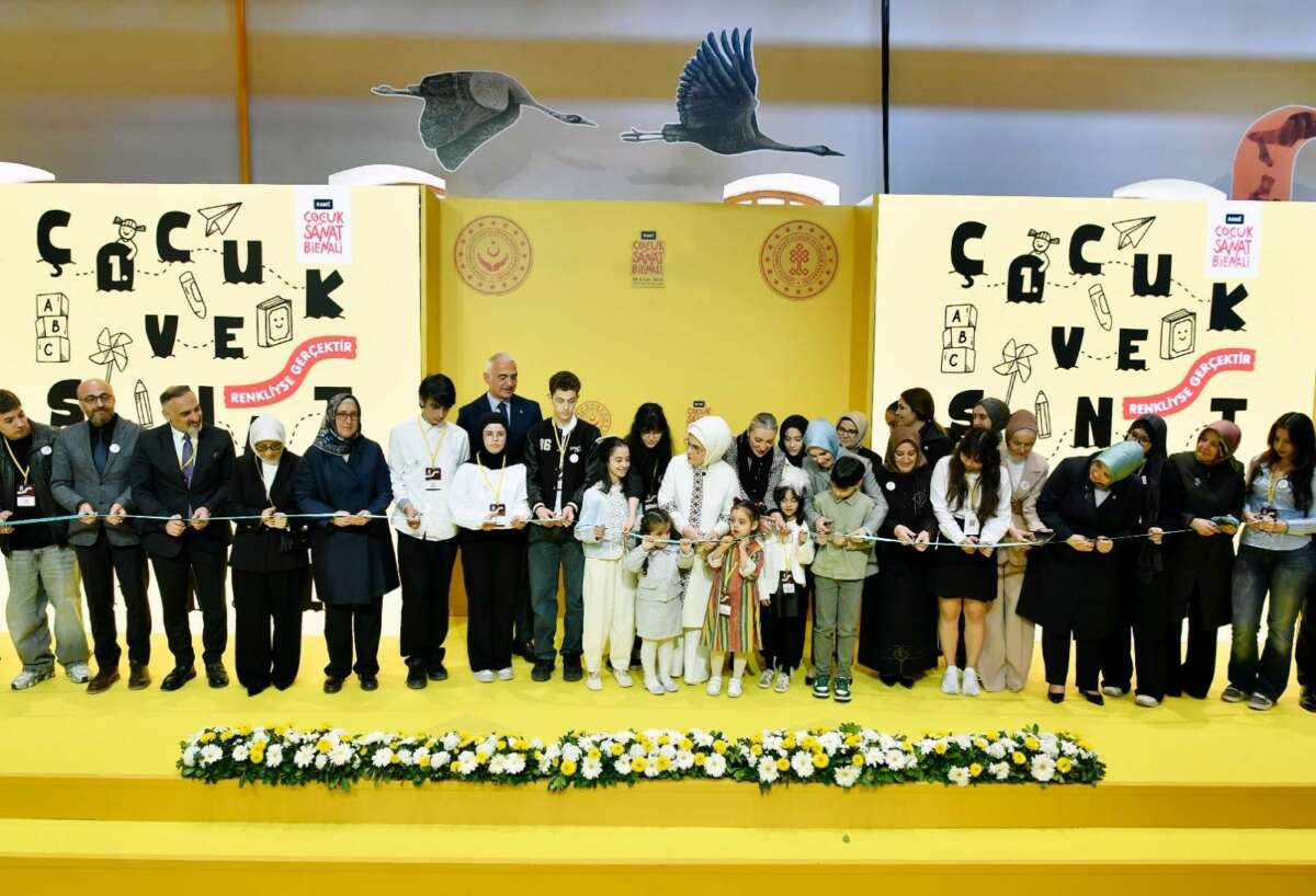 Bakan Göktaş’ın konuşmasının ardından Cumhurbaşkanı Recep Tayyip Erdoğan’ın eşi Emine Erdoğan ve alanda bulunan çocuklarla birlikte kesilen kurdele sonrası bienalin açılışı gerçekleşti.
