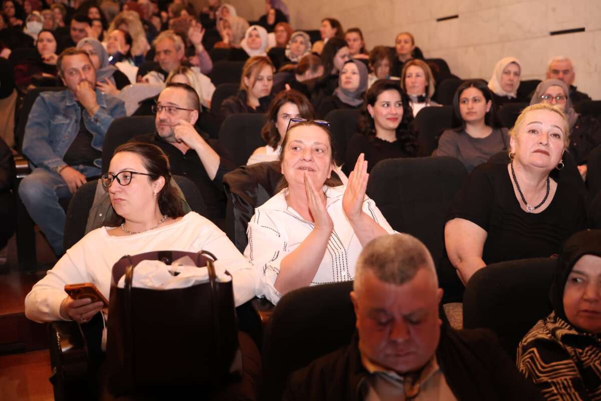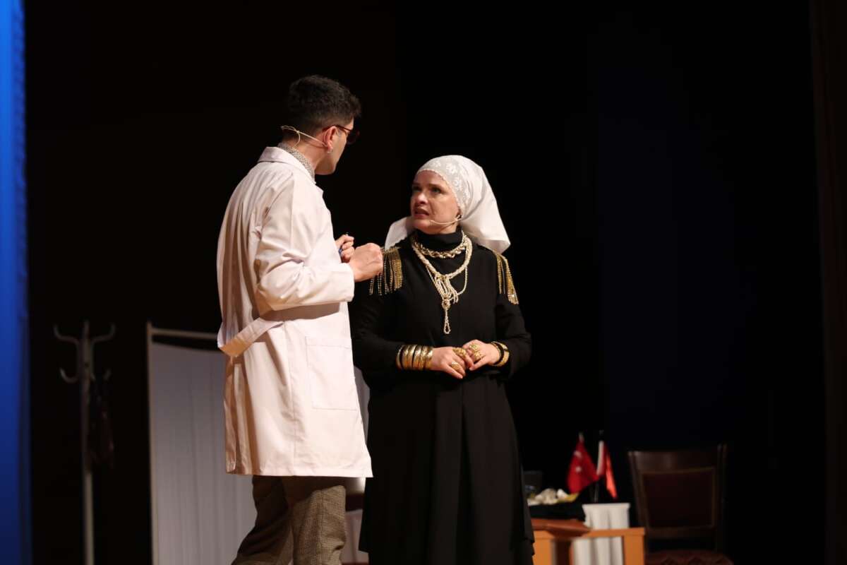 Oyunu yazan ve yöneten Yusuf Emini, Selviye Hürriyet ve Ercan Sarı’nın aynı zamanda sahnede oyunculuğunu sergilediği oyun, Rumeli kültürünü, gelenek ve göreneklerini, aile içi ilişkileri ve Balkan coğrafyasının sıcaklığını esprili bir dille ele aldı. Yalnızca belirli bir yöreye ait unsurları değil, evrensel temaları da sahneye taşıyan oyun, özellikle kadın karakter üzerinden ilerleyen hikayesiyle, her kesimden izleyicinin kendinden bir parça bulabileceği güçlü bir anlatım sundu. Salonun büyük bölümünü dolduran izleyicilerden tam not alan “Taksiratli Şekibe”, alkışlarla ödüllendirilirken, izleyicilere de adeta bir kahkaha tufanı yaşattı. Samimi anlatımı ve sıcak atmosferiyle dikkat çeken oyun, Osmangazili sanatseverlere unutulmaz bir akşam sundu.