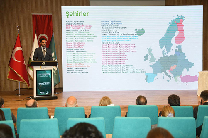 Türkiye Sağlıklı Kentler Birliği Başkanı ve İzmir Büyükşehir Belediye Başkanı Dr. Cemil Tugay ise yaptığı konuşmada, “Paris Antlaşması ile dünyanın ısı artışının 1,5 derecede sınırlandırılması hedefi konulmuştu. Maalesef bu hedefe hızlıca ulaşıldı. 2030 yılında dünyanın karbon nötr olması hedefleniyordu. En azından yüzde 45’lik bir azaltım hedeflenmişti. Ancak dünya, bu hedeften çok uzak durumda. Son yıllardaki sıcaklık ortalamaları 1,5 derecenin üzerine çıktı bile. Çevresel sorunlar, tarımda rekolte azalması, kuraklık, ekosistem değişimleri, denizlerimizde müsilaj oluşması, ülkemizde daha önce görmediğimiz haşere türlerinin ortaya çıkması gibi durumlar işe bu sıcaklık artışının sonuçları. Ekosistemin bozulmasına, bunun da kent yaşamımıza olumsuz yansımasına tanık olacağız. Türkiye’nin daha hızlı adımlar attığı bir plana ihtiyacı var. Türkiye, 2053 yılında karbon nötr hedefi koymuş durumda. Ancak bizim bu hedefe 2153’te dahi ulaşmamız imkansız. Bütün dünya ülkeleri kömür tüketiminde geriye giderken, biz kömür yatırımlarımızı arttırmış durumdayız. Yıllık 558 milyon ton karbon emisyonumuz var. Kişi başına 6,71 ton karbon üretiyoruz. Bu rakamlarla dünyada karbon üretiminde 15’inci sıradayız. Karbon üretimine neden olan en büyük etkenin kömüre dayalı enerji üretimi olduğunu görüyoruz. Daha sonra sanayi ve tarım geliyor. Enerjiyi daha verimli kullanmak yolunda önemli çalışmalar yapmamız gerekiyor” dedi.