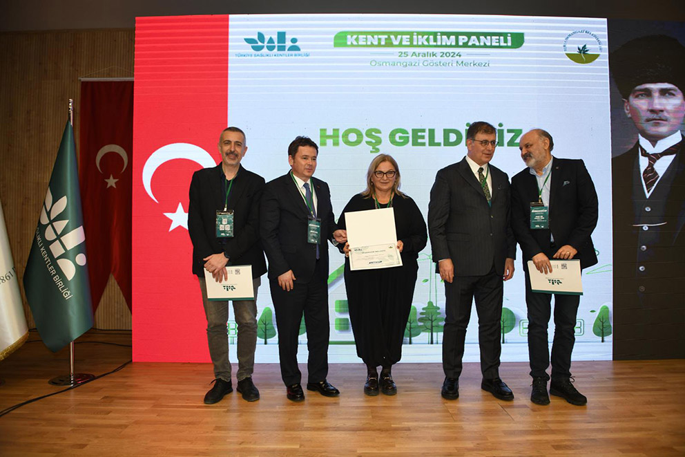 Türkiye Sağlıklı Kentler Birliği Kent ve İklim Paneli’nin kapanış oturumunun ardından tüm katılımcılara sertifika takdim edildi. Türkiye Sağlıklı Kentler Birliği Başkanı ve İzmir Büyükşehir Belediye Başkanı Dr. Cemil Tugay, başta olmak üzere Türkiye’nin birçok bölgesinden Bursa’ya gelen birlik üyesi belediye başkanları ve meclis üyeleri, akademisyenler ve diğer tüm katılımcılar Osmangazi’ye ve organizasyona hayran kaldıklarını belirterek Osmangazi Belediye Başkanı Erkan Aydın’a misafirperverliklerinden dolayı özellikle teşekkür ettiler.