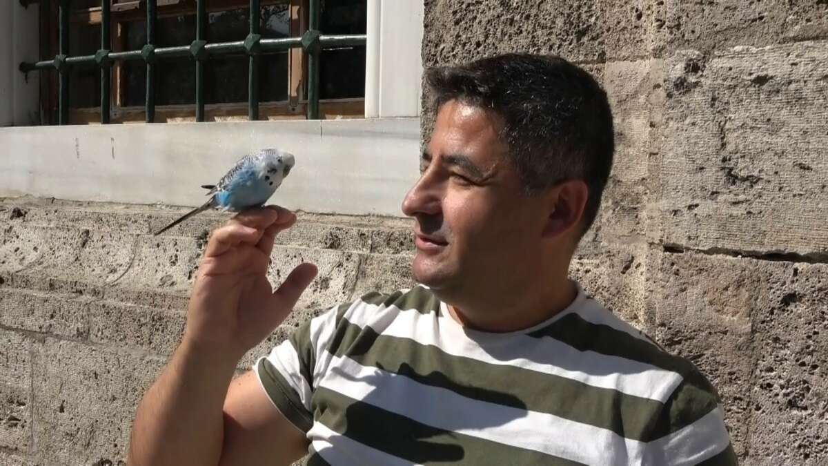 Merkez Osmangazi ilçesindeki tarihi Emir Han’da berberlik yapan Murat Tekin’in en yakın dostu, Müdür ismini verdiği muhabbet kuşu.