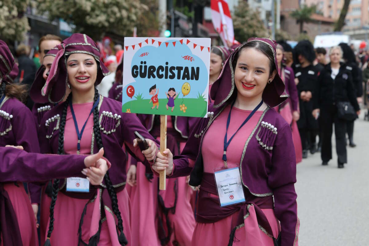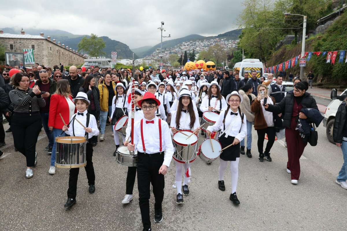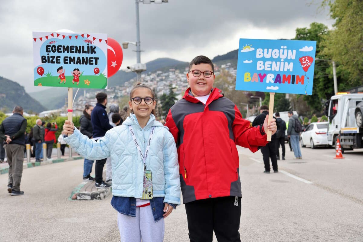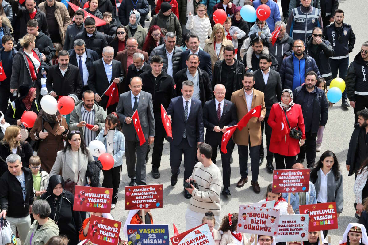 23 Nisan coşkusu, yüzlerce çocuk ve ailelerinin katılımıyla Çarşıbaşı’ndan Atatürk Stadyumu Kütüphanesi’ne doğru yapılan kortej yürüyüşüyle başladı. Ellerinde Türk bayraklarıyla marşlar ve şarkılar söyleyen çocuklara, Büyükşehir Belediyesi Başkan Vekili Şahin Biba, AK Parti Bursa İl Başkanı Davut Gürkan, AK Parti Bursa Milletvekili Mustafa Yavuz, Büyükşehir Belediyesi Genel Sekreteri Deniz Köken, meclis üyeleri, siyasi parti temsilcileri, sivil toplum kuruluşları üyeleri ve aileler de eşlik etti. Çocuklar, ellerindeki pankartlar, Türk ve Atatürk bayraklarıyla Atatürk Stadyumu Kütüphanesi’ne kadar bando eşliğinde coşkuyla yürüdü.