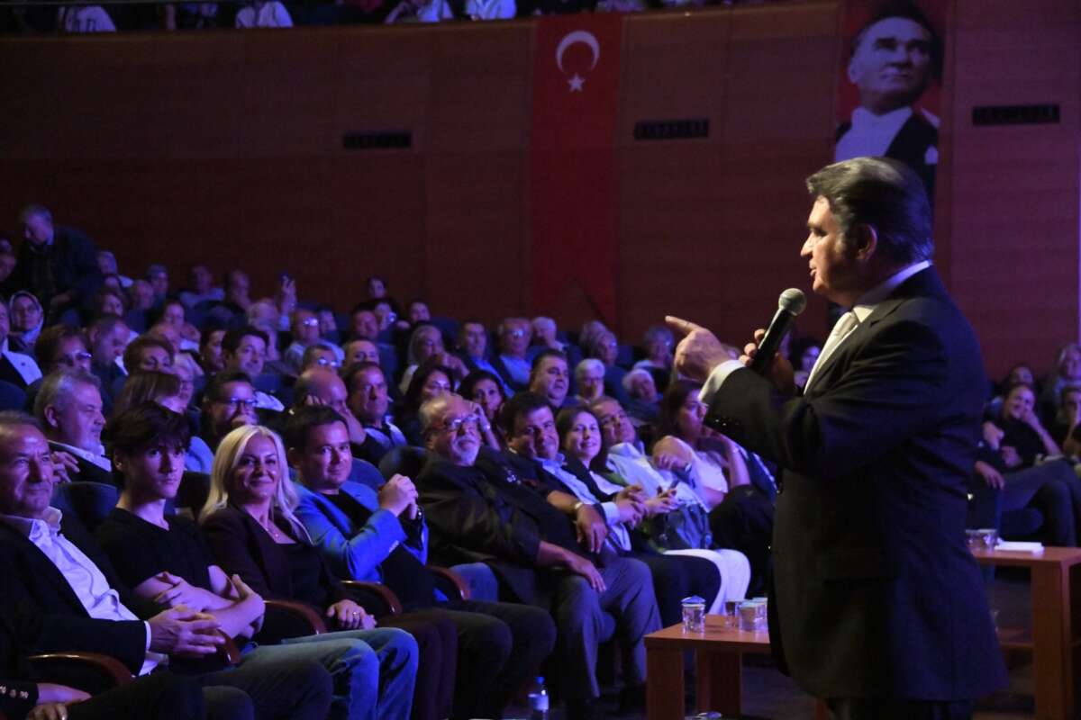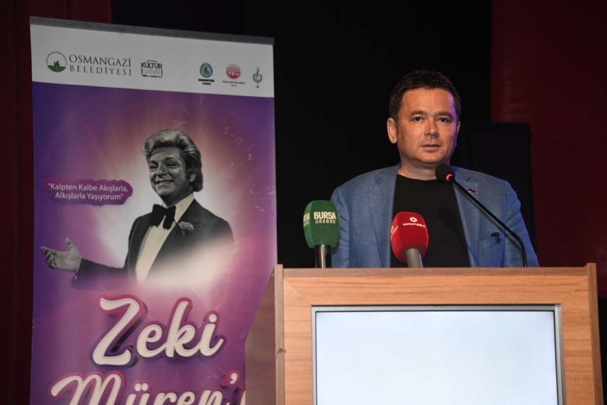 Zeki Müren’in vefatının 29’uncu yılında anma etkinliği ve konser düzenlediklerini ifade eden Osmangazi Belediye Başkanı Erkan Aydın, “Zeki Müren’i ülkemize, Bursa’mıza sanata ve kültüre yaptığı katkıları burada 1,5 saat içinde anmak elbette yeterli değil, kendisi ülkemizin sanat güneşi, zarafeti, nezaketi ve saygısıyla aramızdan ayrılalı 29 yıl olmasına rağmen gencinden yaşlısına herkesin kalbinde o en müstesna yeri hala taşımakta, sanatını zaten biliyoruz. Sanat müziğine yaptığı katkıları sayısız eserleri hala zevkle, bazen hüzünle ve neşeyle dinliyoruz. Zeki Müren’in başka yönleri de vardı. İnsani yönleri çok kuvvetliydi. Bütün mirasını Mehmetçik Vakfı’na bağışladı. Bir bilinmeyen özelliği de Çanakkale Şehitler Abidesi’nin yapımına 1958 yılında başlanıyor ve yarım kalıyor. Zeki Müren tüm konserlerini bırakıp Türkiye turnesine çıkıyor. Turneden elde ettiği geliri Çanakkale Şehitler Abidesi’nin bitmesi için harcamış ülkesi ve memleketi için her türlü fedakarlığı yapmıştır. Büyük Önder Mustafa Kemal Atatürk, silah arkadaşları, Mehmetçik ve hayatını düşünmeden feda edenleri Zeki Müren’de ölümsüz kılmıştır. Sanatını böyle bir ulvi bir amaç için kullanmıştır, ruhu şad olsun” dedi.