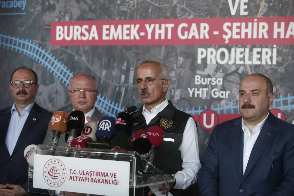 Bursa’da metro ağının YHT Garı’na kadar uzanacağını ve 2026 yılına kadar tamamlamayı hedeflediklerini kaydeden Uraloğlu, “Bursa için özellikle hafif raylı sistem ile ilgili gerekli tespitleri yaptık. Bizim Bursa Uludağ Üniversitesi ile depo sahası arasında yaklaşık 1200 metrelik bir alan vardı, burayı projeye sonradan ilave ettik. Bunu üniversite ile depo arasında bağlantıyı sağlamış oldu. Yine aynı şekilde devam eden Emek-Şehir Hastanesi arasındaki yaklaşık 4 bin 900 metrelik hatta da çalışmalar devam ediyoruz. Buradaki çalışmaları da inşallah 2026 sonuna kadar bitirmeyi istiyoruz. Ama bu hafif raylı sistem ve metronun bulunduğumuz Yüksek Hızlı Tren Gar İstasyonuna kadar olan bölümü yine yılın ilk yarısında veya ortalarında bitirerek bu entegrasyonu sağlamış olacağız. Yine burada bir karayolu ve bağlantısını da araçlarıyla kullanacak olan vatandaşlarımız için Karayolları Genel Müdürlüğümüz ve Altyapı Yatırımları Genel Müdürlüğümüz ile planladık. İnşallah onun yapı sürecini de önümüzdeki günlerde başlamış olacağız. Burada bir başka çözmemiz ve yapmamız gereken konu üniversite ile Görükle arasındaki yaklaşık 5,5 kilometrelik bir bağlantının yapılmasıdır. Burada biz geçmişte Bursa Büyükşehir Belediyesi ile bunu ortaklaşa ya da iş birliği ile yapma konusunda mutabık kalmıştık. Şimdi burada biz Büyükşehir Belediyesi’nden bu 5,5 kilometrelik raylı sistemin projesinin yapılarak bize teslim edilmesini, Altyapı Yatırımları Genel Müdürlüğü’ne teslim edilmesini bekliyoruz. Çünkü protokolün gereği buydu. Biz de yapımını zaten üstlenmiştik. Yapımla ilgili çalışmalarımızı biz planladık. Ama proje bitecek ki biz onlara başlayabilelim. Dolayısıyla Bursa Büyükşehir Belediyesinden beklentimiz budur. Arkadaşlarımız kendileriyle görüşme halinde. Ne kadar hızlandırırsalar, Bursa’ya bu hizmeti o kadar kısa zamanda kavuşturmuş oluruz. Dolayısıyla biz Bursa’da ulaşımın her noktasında elbette karayolu, demiryolu, yüksek hızlı tren hattı, hafif raylı sistem ve metro karmasıyla beraber projelerimizi yakından takip ediyoruz. İnşallah bu projeleri sizlere söylediğimiz tarih dilimlerinde bitirerek Bursa’mızın hizmetine açmış oluruz” şeklinde konuştu.