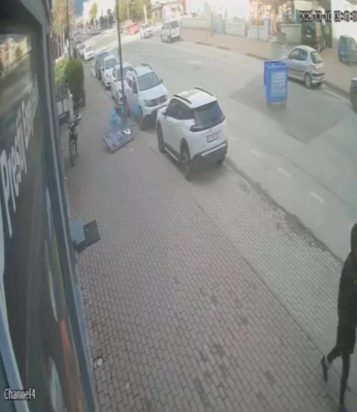 Aynı anlarda lodosun etkisiyle bir çöp kutusunun da sürüklendiği görüldü. Yaşanan tehlikeli anlar, çevredeki bir iş yerinin güvenlik kamerasına yansıdı.