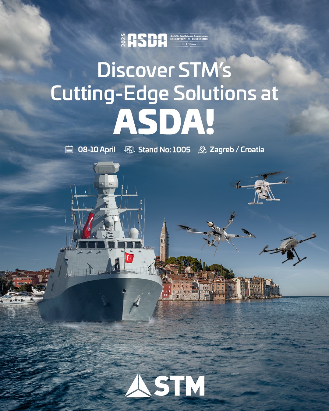 Türkiye’nin “Tam bağımsız savunma sanayii” hedefleri doğrultusunda, milli projelere ve ihracat başarılarına imza atan STM Savunma Teknolojileri Mühendislik ve Ticaret A.Ş, milli teknolojilerini yurt dışına taşımaya devam ediyor. STM, Adriyatik Bölgesinin önemli savunma fuarlarından biri olan ve bu yıl 8-10 Nisan 2025 tarihleri arasında, Hırvatistan’ın başkenti Zagreb’te düzenlenecek Adriyatik Savunma ve Havacılık Fuarı ASDA-2025’e katılım sağlayacak.