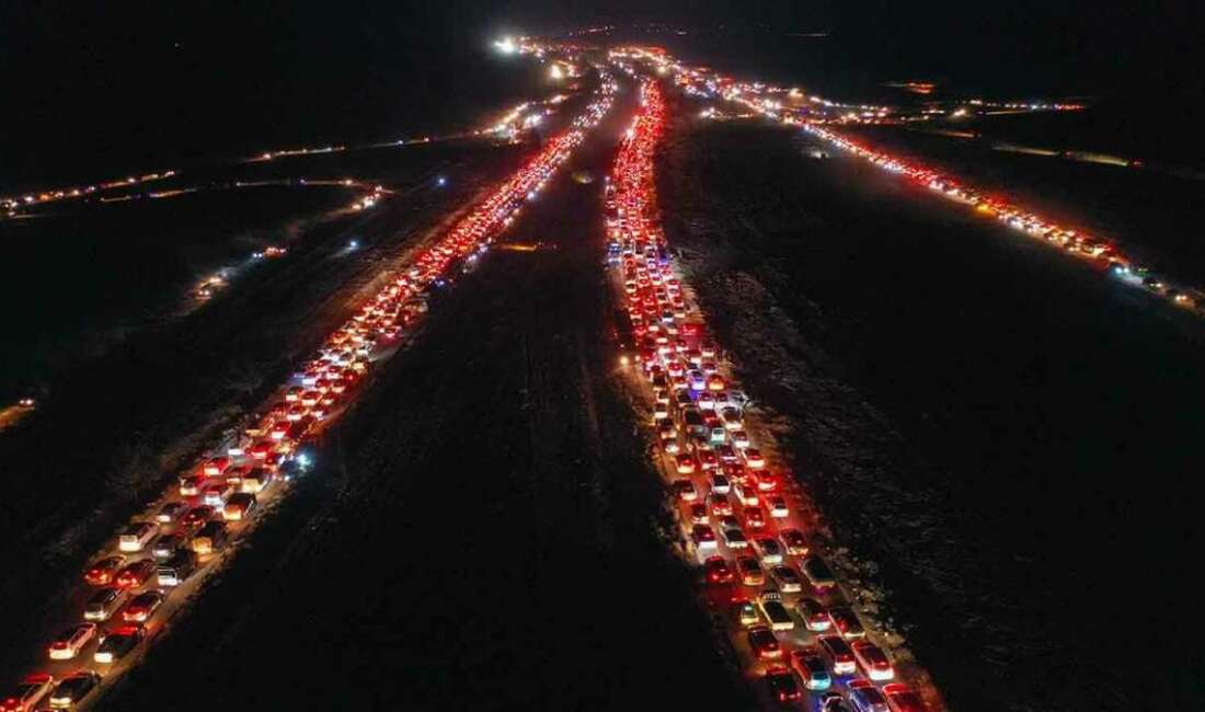 Bir yandan da Suriye’deki halk Şam’a doğru yola çıktı. Şam’a gidiş ve dönüş yolunda uzun araç kuyrukları oluştu. Yaşanan trafik havadan görüntülendi.