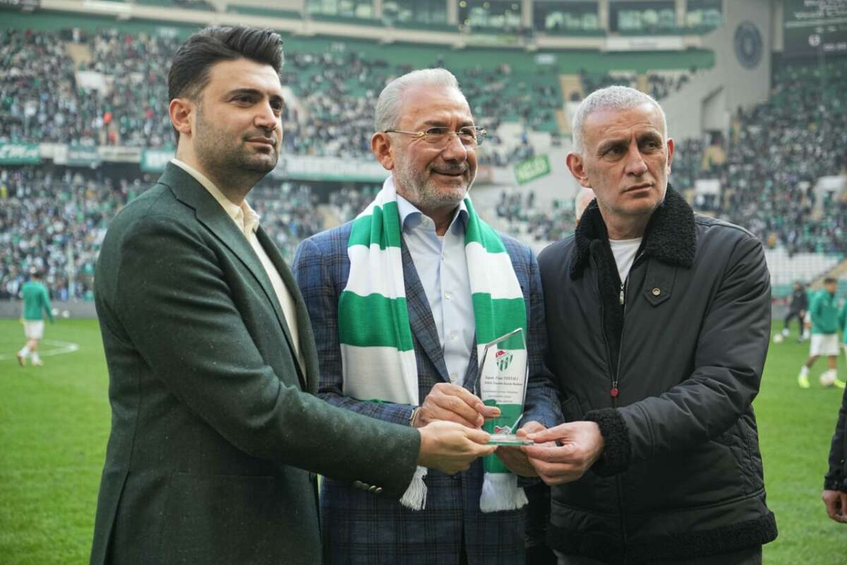 Bursaspor Başkanı Enes Çelik, TOGG Yönetim Kurulu Başkanı Fuat Tosyalı’ya teşekkür plaketi takdim etti. Törende TFF Başkanı İbrahim hacıosmanoğlu da yer aldı.