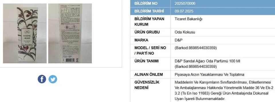 Bakanlık tarafından yapılan açıklamaya göre, toplatma kararı verilen ürünler şunlar: