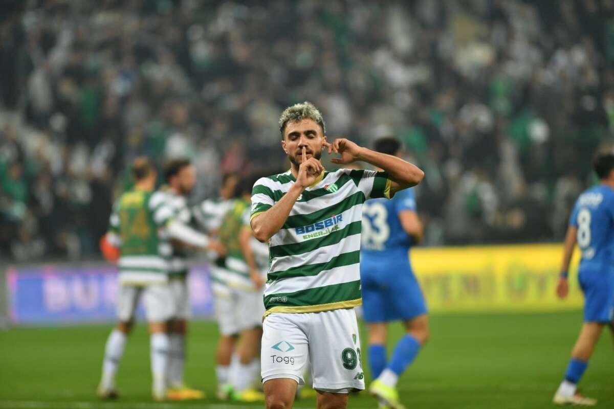 Hafta içi oynanmasına rağmen 30 bin 340 Bursasporlu taraftar tribünleri doldurdu. Yeşil-beyazlılar, 90 dakika boyunca takımlarına büyük destek vererek galibiyette önemli rol oynadı.