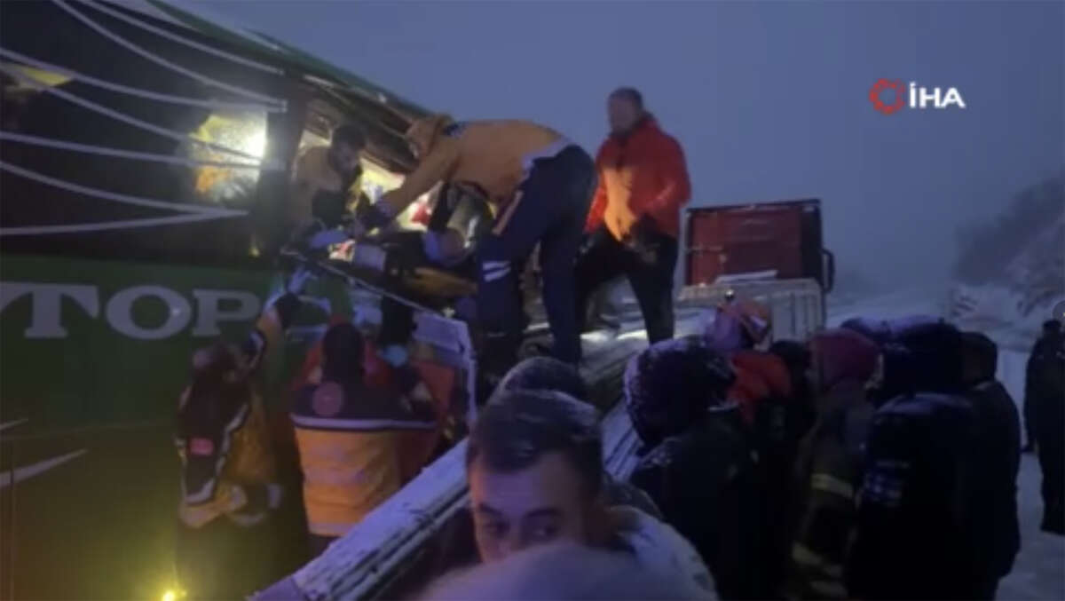 Kaza, akşam saatlerinde Tokat-Sivas kara yolu Kızıliniş mevkisinde meydana geldi. Tokat yönüne ilerleyen Topcan firmasına ait, H.Ö. yönetimindeki 60 BD 891 plakalı yolcu otobüsü, kar yağışı nedeniyle kayganlaşan yolda duramayarak önünde seyreden, demir yüklü 55 BLC 53 plakalı tırın dorsesine arkadan çarptı.
