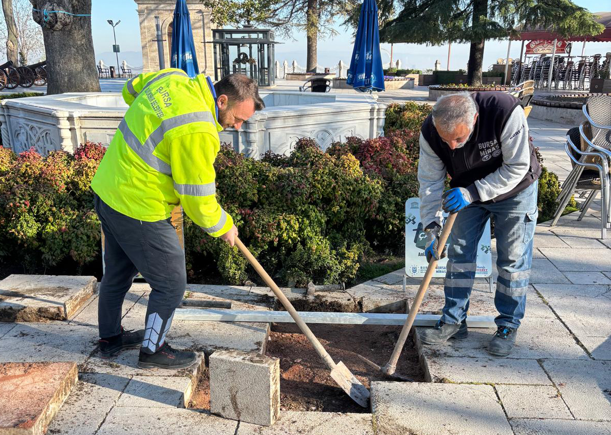 Panoramik Bursa manzarasına sahip olan meydan, yenilenen yüzüyle kentin turizm değerine değer kattı.
