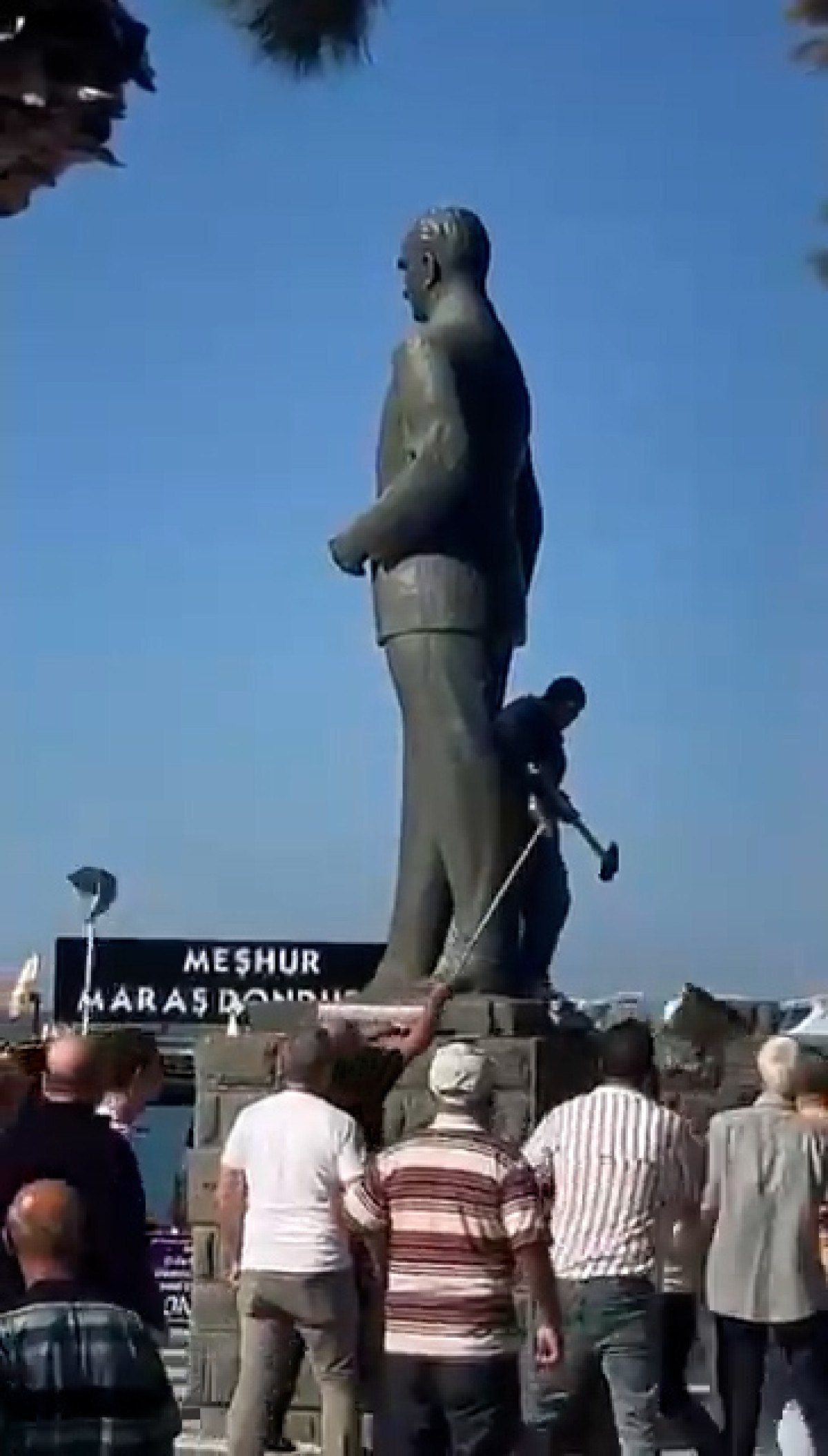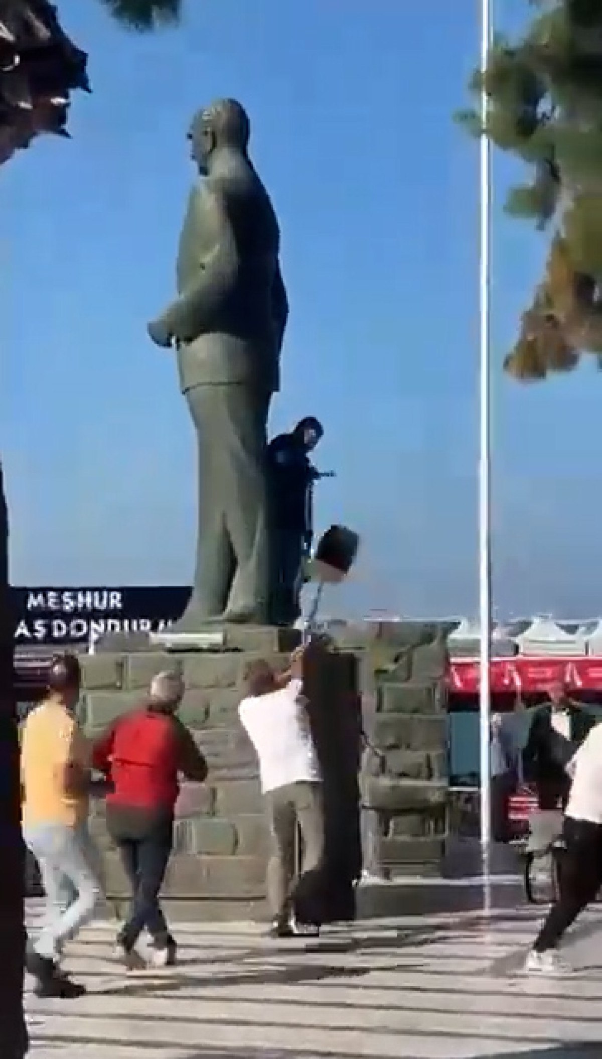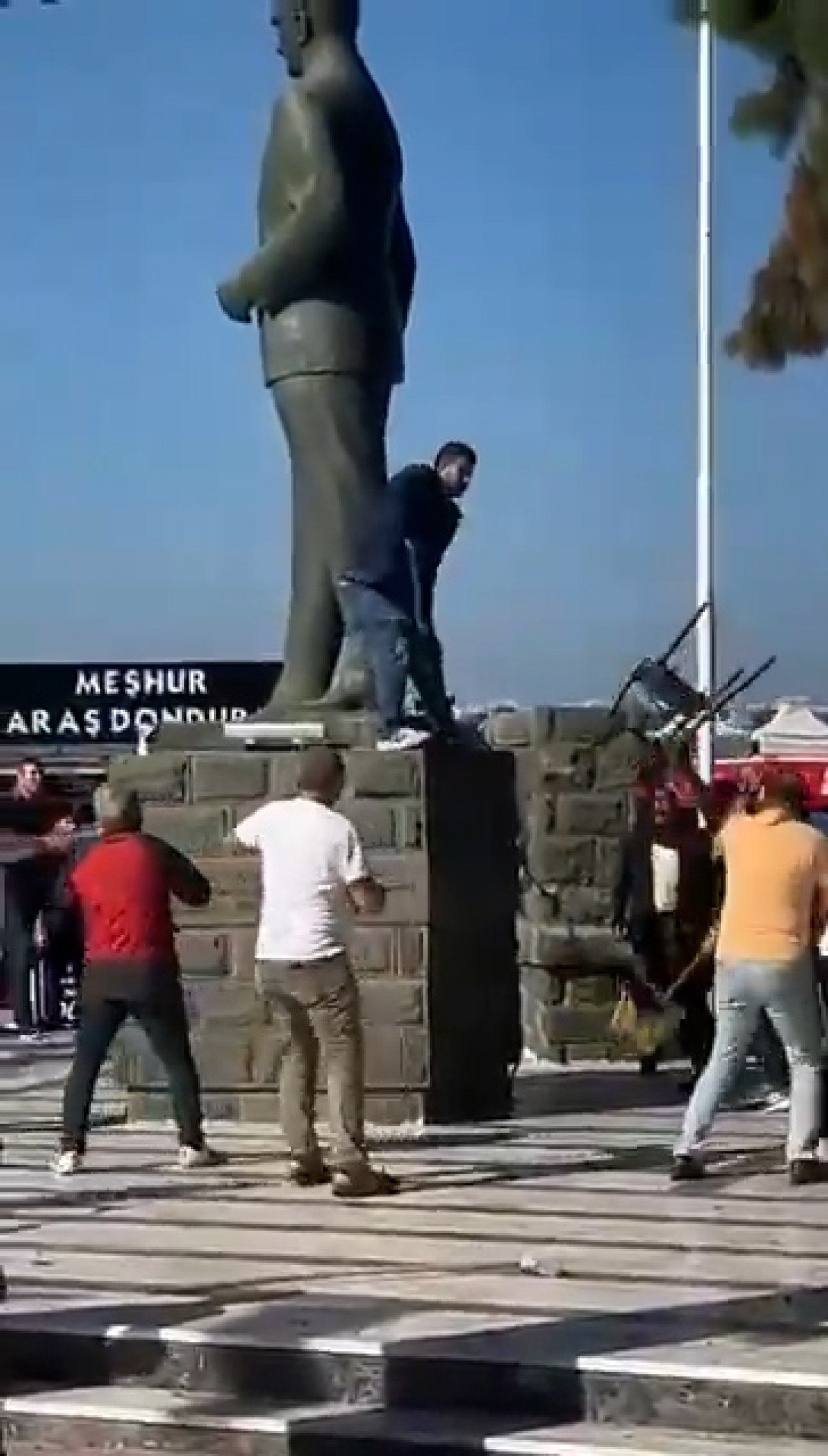 Şahıs, çıktığı Atatürk anıtının üzerinden indirildikten sonra dövüldü.