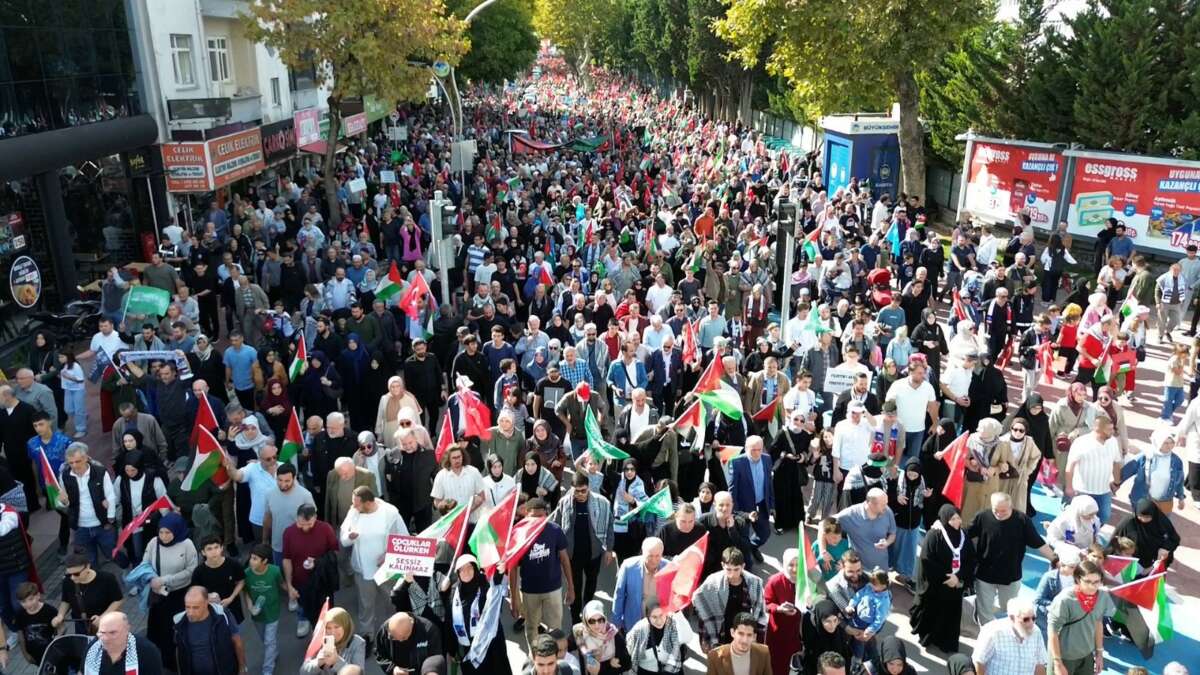 Binlerce vatandaş, pankartlar, dualar ve sloganlarla hem Filistin halkına destek verdi hem de insanlık onuruna sahip çıkma çağrısında bulundu.