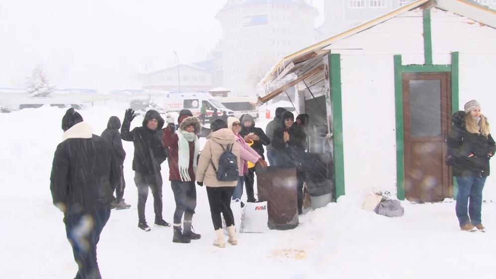 Türkiye’de kış ve kayak turizminin gözde merkezlerinden Uludağ’da kar kalınlığı 60 santimetrelere ulaşırken hava sıcaklıkları ise -8 derecelere kadar düştü. 2. Oteller Bölgesi’ndeki Bursa Büyükşehir Belediyesi’ne bağlı BURFAŞ Uludağ Sosyal Tesisleri’ne gelen turistler, yoğun kar yağışı altında bir yandan sıcak kahvelerini yudumlarken bir diğer yandan da tesiste çalan müziklerle dans ederek ısındı. Turistlerin dans ederken görüntüleri renkli anlara sahne oldu. Oyun havası oynayarak ısınan Umut Yaşar, “Bursa’da yaşıyorum ama Uludağ’a ilk kez geldim. Beklediğimden çok daha güzel bir ortam var. Az önce oyun havası oynadık burada. Gayet güzel eğleniyoruz” dedi. Antalya’dan Uludağ’a gelen Oğuz Kaya, “Antalya’dan arkadaşlarımın yanına geldim. 30 dereceden -8 dereceye gelmek biraz yorucu. Bursa ve Uludağ’ı çok beğendik. Ömrümde ikinci kez kar görüyorum” ifadelerini kullandı.
