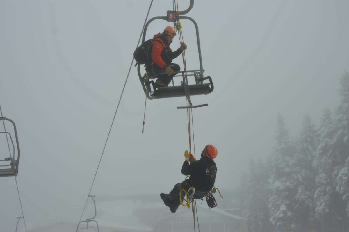 Kış aylarında sağlıklı bir insanın bile eksi derecelerdeki havada hareketsiz kalması, donma tehlikesi yaşamasıyla karşı karşıya gelebileceğini belirten ekipler, senaryo gereği teleferikte mahsur kalan ekip arkadaşlarını güvenli bir şekilde kurtardı.