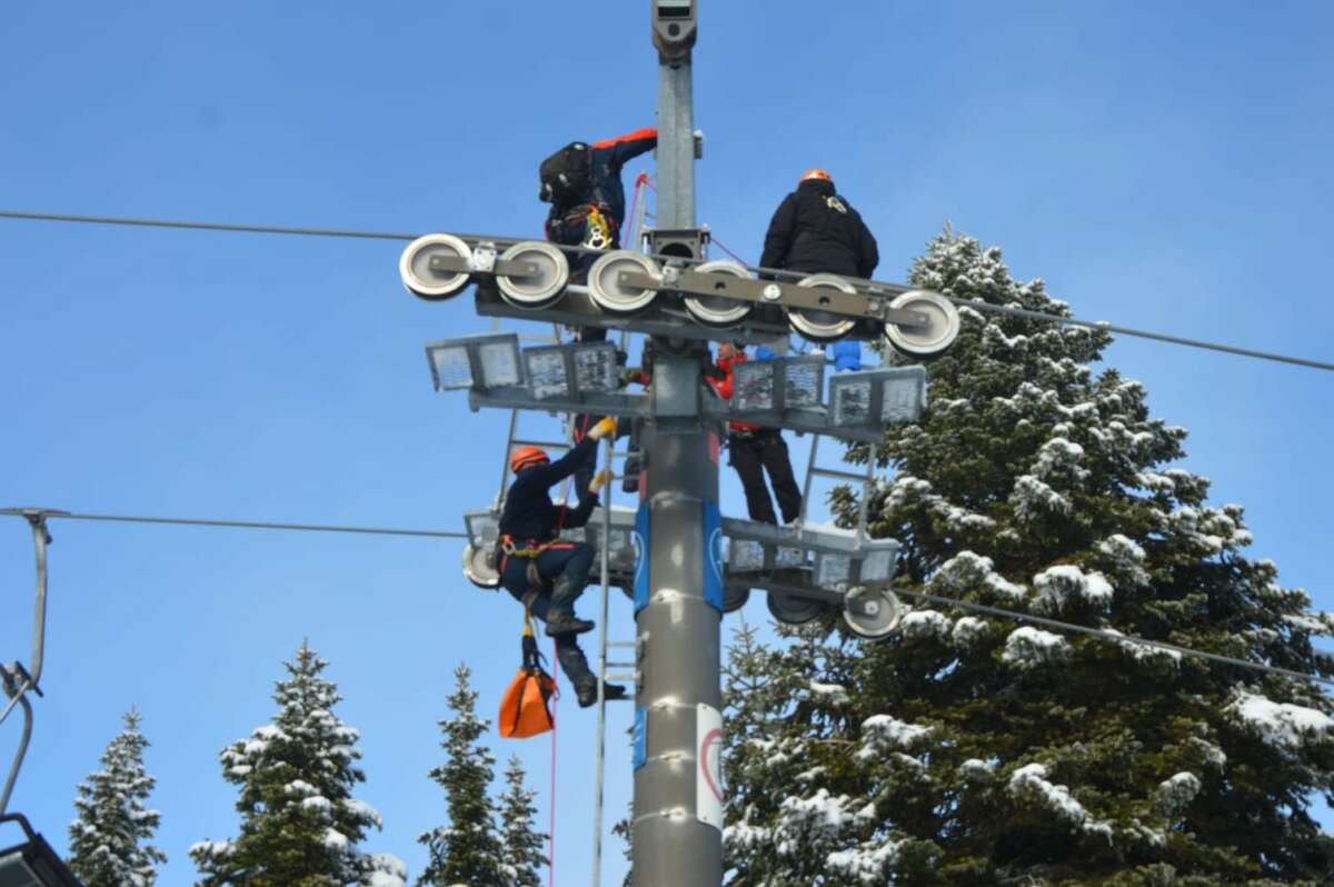 Bursa‘da AFAD ve JAK ekipleri, Uludağ’da gerçekleştirdikleri kurtarma tatbikatında yürekleri ağza getirdi. Uludağ’ın karla kaplı bölgesinde 35 AFAD ve 2 tim JAK ekibi, duran telesiyejdeki kişileri sağlıklı bir şekilde yere indirmek için akrobatları aratmayacak şekilde tellerde ilerledi. Mahsur kalanlara ulaşan ekipler, onları sağlıklı bir şekilde indirmek için gereken bütün önlemleri aldı.