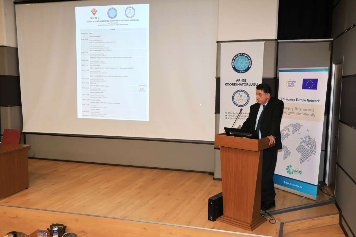 Etkinliğin açılış konuşmasını gerçekleştiren Rektör Yardımcısı Prof. Dr. İrfan Kırıştoğlu, BUÜ’nün zaman içerisinde güçlü bir proje kültürü kazandığını, ancak bu kültürün yerel odaklı TÜBİTAK projelerinden daha geniş bir uluslararası ekosisteme evrilmesi gerektiğini vurguladı. Avrupa Birliği projelerine başvurmanın sadece üniversiteye değil, aynı zamanda ülkeye ciddi bir kaynak aktarımı sağlayacağını belirten Kırıştoğlu, bu programların temelinde ortak çalışma disiplini ve geniş ağlar kurma hedefinin yattığını ifade etti. Uzmanlarla yapılacak birebir görüşmelerin teknik bilgi birikimini artıracağını dile getiren Kırıştoğlu, etkinliğin tüm katılımcılar için somut kazanımlarla sonuçlanmasını dileyerek konuşmasını tamamladı.