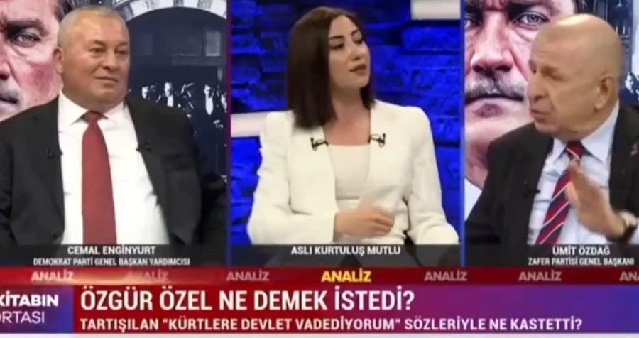Sözcü TV’nin canlı yayınına konuk olan Zafer Partisi Genel Başkanı Ümit Özdağ, geçtiğimiz günlerde MHP lideri Devlet Bahçeli’nin terörist elebaşı PKK’lı Abdullah Öcalan için başlattığı çağrıya karşı CHP’nin tutumunu sert bir dille eleştirdi. Bu eleştirilere yanıt vermek isteyen CHP Ankara Milletvekili Umut Akdoğan’ın yayına katılacağını öğrenmesi sonrası Özdağ, canlı yayını terk etti.