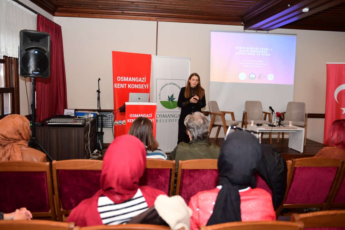 Osmangazi Belediyesi, Osmangazi Kent Konseyi Kadın Meclisi ile birlikte Şadırvanlı Han’da kadın sağlığına yönelik anlamlı bir panele ev sahipliği yaptı. Psikolojik Danışman Berrak Damla Karaca, Uzman Diyetisyen ve Uzman Fizyoterapist Sümeyye Şükran Özkeleş ve Kadın Hastalıkları ve Doğum Uzmanı Op. Dr. Fatma Serra Sezer’in konuşmacı olarak yer aldığı panele, Osmangazi Belediyesi Başkan Vekili Hamiyet Baysal Arıkarslan, Osmangazi Kent Konseyi Kadın Meclisi üyeleri ve vatandaşlar katıldı.