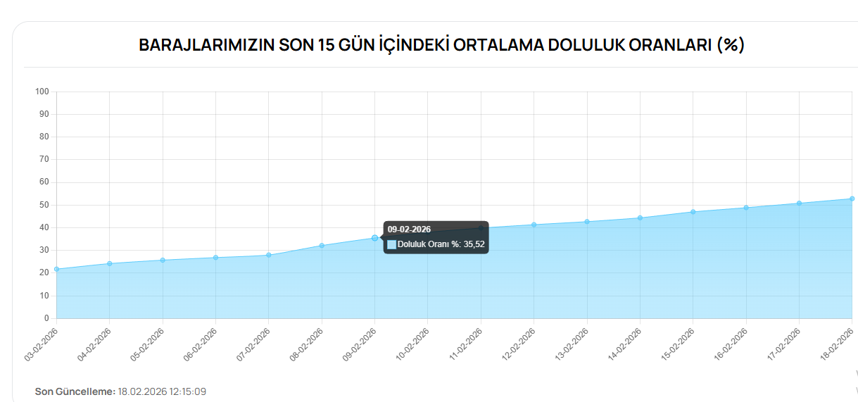 3 Şubat 2026’da yüzde 20’ler seviyesinde olan doluluk oranı, yalnızca 15 gün içinde iki katından fazla artarak kritik eşiklerin üzerine çıktı.