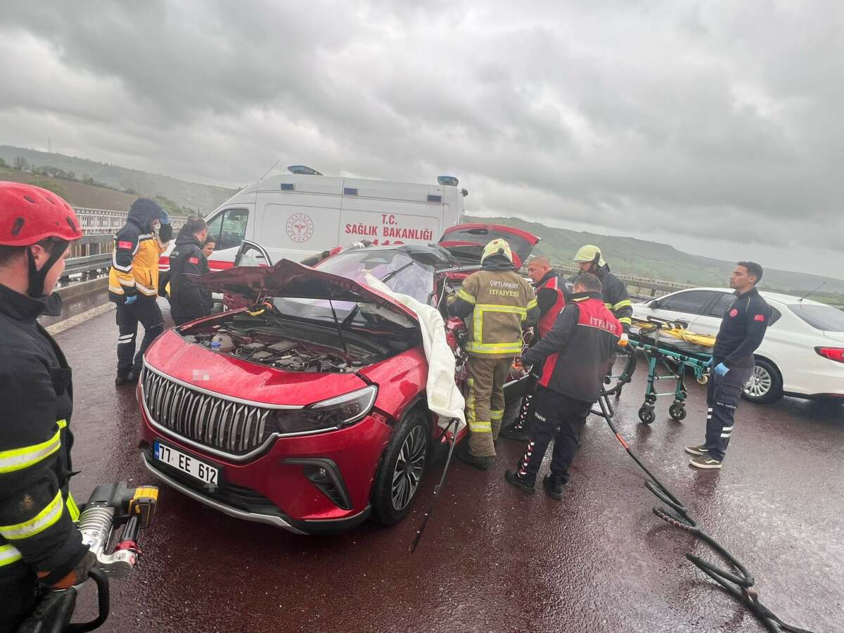 Alınan bilgiye göre, Gebze-İzmir Otoyolu’nda Bursa istikametinde ilerleyen Rabianur Ç. idaresindeki 77 EE 612 plakalı elektrikli otomobil ile aynı istikamette giden 16 VM 404 plakalı tır çarpıştı. Kazada araçta bulunan sürücünün yanı sıra Irmak Ö., Rüya Ö. ve Yunus Emre Ç. yaralandı. Yaralılardan ikisinin araçta sıkıştığı öğrenildi. İhbar üzerine olay yerine sağlık, itfaiye ve jandarma ekipleri sevk edildi. Araçta sıkışan yaralılar, ekiplerin çalışmasıyla bulundukları yerden çıkarılarak sağlık ekiplerine teslim edildi. Yaralılar daha sonra ambulanslarla Yalova Eğitim ve Araştırma Hastanesi’ne kaldırılarak tedavi altına alındı.