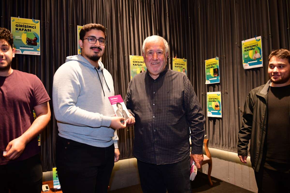 Yaklaşık 2 saat süren söyleşinin ardından genç girişimciler için getirdiği kitapları katılımcılara hediye eden İrfan Demirdüzen, “Kazanırsak hep beraber ülke olarak kazanacağız, bireysellik ön planda olursa kaybedeceğiz” ifadesini kullandı.