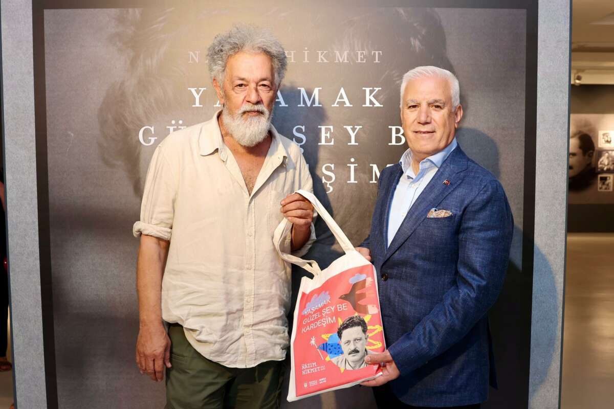 Başkan Mustafa Bozbey, serginin küratörü Emre Zeytinoğlu ile birlikte iki sergiyi de gezerek izlenime sunulan eserleri dikkatle inceledi. Sergiyle birlikte usta şairin yaşam öyküsünün Bursalılarla bir kez daha buluştuğunu söyleyen Başkan Bozbey, tüm vatandaşları Nâzım Hikmet’in ender görülen fotoğraflarının da yer aldığı sergiyi gezmeye davet etti. Farklı sanatçılar tarafından yapılan Nâzım portrelerinin de sergiye değer kattığını belirten Başkan Bozbey, başta küratör Emre Zeytinoğlu olmak üzere sergide emeği geçenlere teşekkür etti.