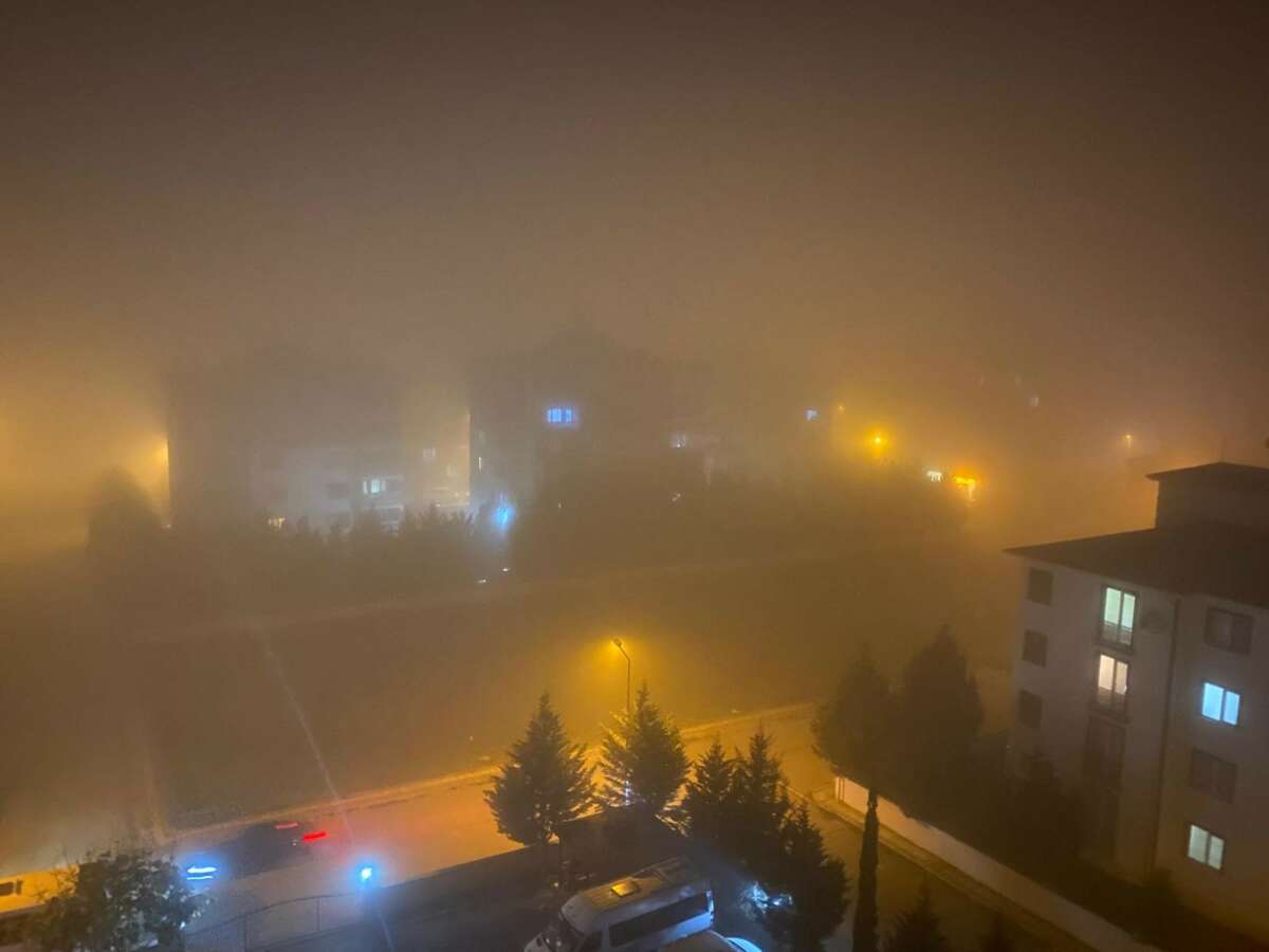 Bursa’nın Yenişehir ilçesinde akşam saatlerinde etkili olan yoğun sisten dolayı görüş mesafesi 1 metreye kadar düştü.
