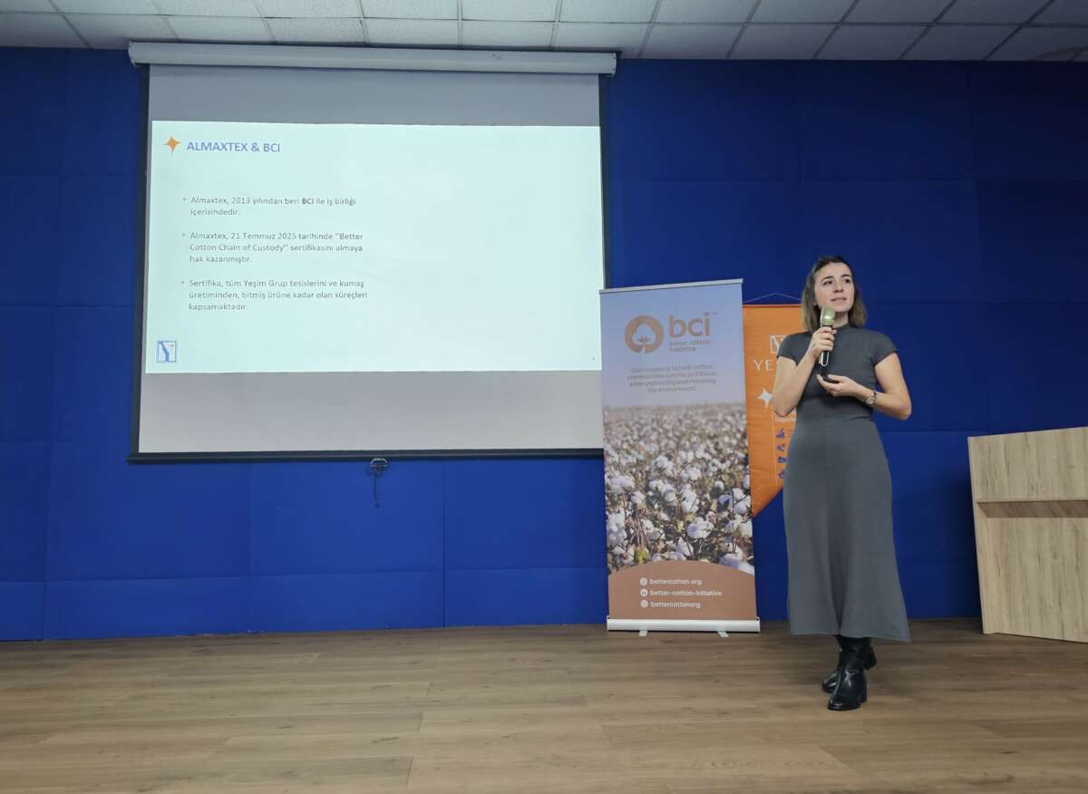 Açılışın ardından söz alan Şeyma Karacay Lokmacı, BCI’ın 2025 yılı itibarıyla devreye aldığı yeni sertifikasyon sistemine ilişkin güncel bilgileri paylaşarak sistemin pamuk tedarik zincirinde şeffaflığı artıracağını vurguladı.