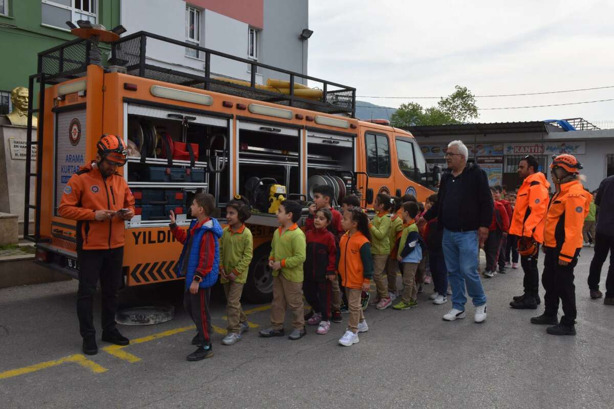 Yıldırım Belediyesi, afetler ve afetlere hazırlık alanlarında farkındalık oluşturacak çalışmalarına devam ediyor. Deprem başta olmak üzere afetler konusunda çocukların bilinçlendirilmesi için afet farkındalık eğitimlerine devam eden Yıldırım Belediyesi Afetİşleri Müdürlüğü ekipleri, öğrenci ve öğretmenlerine çök-kapan-tutun hareketi, okuldan güvenli tahliye, afettoplanma alanı, deprem anında ve sonrasında doğru hareket etme yöntemleri konularında teorik ve uygulamalı eğitim verdi. Öğrenciler eğitime yoğun bir ilgi gösterirken, Okul Müdürü Altan Özgür de Yıldırım Belediyesi ve Başkan Oktay Yılmaz’a teşekkür etti.