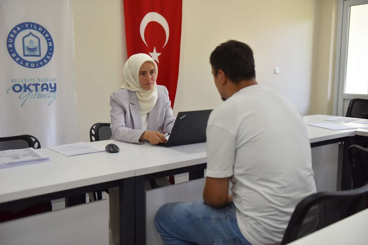 Yıldırım Belediyesi iş arayanlarla elaman arayanları buluşturmaya devam ediyor. Engelsiz İstihdam Fuarı’nda 200 özel bireyin iş sahibi olmasına vesile olan Yıldırım Belediyesi’nin ‘İşimiz İstihdam Programı’ kapsamında ISS ile yapılan iş birliği çerçevesinde Bursa Şehir Hastanesi’nde temizlik personeli, ilaçlama görevlisi, otopark görevlisi, klinik destek personeli, taşıma personeli, atık personeli, garson ve çamaşırhane görevlisi olarak 200 kişiye istihdam sağlayacak. Yıldırım Belediyesi Kadın Aile Müdürlüğü Eğitim Salonu’nda gerçekleştirilen mülakat görüşmelerine 700’ün üzerinde vatandaş başvurdu.