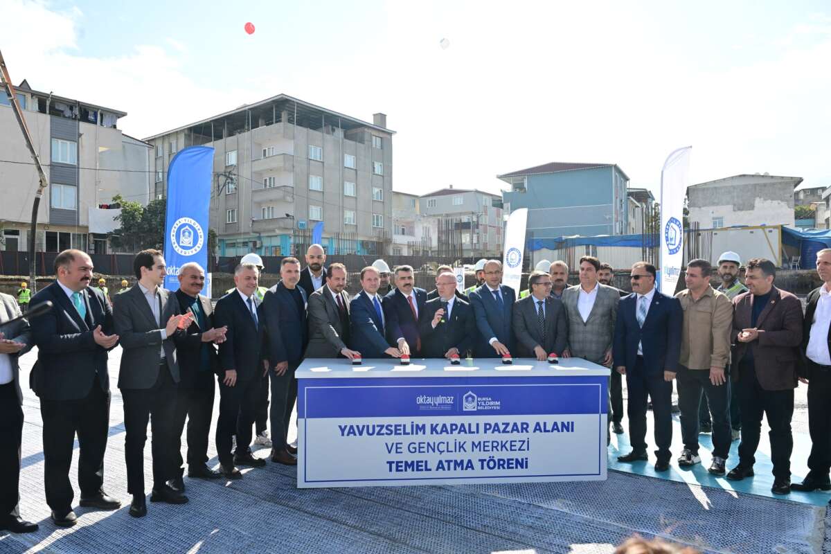 Yıldırım’ın ihtiyaç duyulan noktalarına modern, sağlıklı ver güvenli kapalı Pazar alanları kazandırdıklarını hatırlatan Başkan Yılmaz, “Bugün temelini attığımız Yavuzselim Kapalı Pazar Alanı da bu güçlü zincirin yeni halkası olacak. Hemşehrilerimizin dört mevsim güvenli, hijyenik ve konforlu koşullarda alışveriş yapacağı; esnafımızın huzurla tezgâh açacağı bu alanlar, mahallelerimize değer katıyor. İnşallah bu projemizi Eylül 2026’da tamamlayarak hizmete açacağız. Birlikte üretmenin, birlikte başarmanın gururuyla diyorum ki: Bursa sizinle güzel” ifadelerini kullandı.