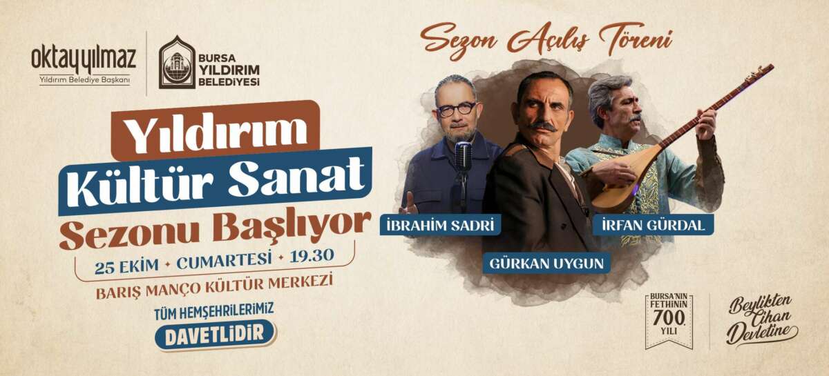 Etkinlikte, sevilen sanatçılar İbrahim Sadri, Gürkan Uygun ve İrfan Gürdal aynı sahnede buluşarak, şiir ve müzikle harmanlanmış özel bir program sunacak. Yıldırım Belediyesi’nin kültür ve sanatı toplumun her kesimiyle buluşturma hedefi doğrultusunda hazırlanan bu özel gece, yeni sezonun da başlangıcını simgeliyor.
