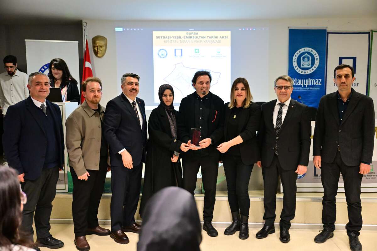 Yıldırım Belediyesi; tarihi, mimarisi, kültürel dokusu ve dini mekanlarıyla Türkiye’nin en önemli turizm güzergahlarından biri olan, Setbaşı, Yeşil, Emirsultan hattını hak ettiği değere kavuşturmak için ‘Bursa Setbaşı-Yeşil-Emirsultan Tarihi Aksı Kentsel Tasarım Fikir Yarışması’ düzenlemişti. Yıldırım Belediyesi öncülüğünde, Mimarlar Odası Bursa Şubesi, Şehir Plancıları Odası Bursa Şubesi ve Peyzaj Mimarları Odası Bursa Şubesi iş birliğiyle düzenlenen yarışmanın sonuçları geçtiğimiz ay açıklanmıştı. Yarışmaya başvuran projeleri titizlikle değerlendiren jüri; toplam 11 eseri ödüle layık bulmuştu. Yarışma sürecinin tamamlanmasının ardından, ‘Bursa Setbaşı-Yeşil-Emirsultan Tarihi Aksı Kentsel Tasarım Fikir Yarışması Kolokyum, Sergi ve Ödül Töreni’ gerçekleştirildi. Bursa Akademik Odalar Birliği Ortak Toplantı Salonu’nda gerçekleştirilen törene; Yıldırım Belediye Başkanı Oktay Yılmaz’ın yanı sıra, Yıldırım Kaymakamı Metin Esen, AK Parti Bursa Milletvekili Emine Yavuz Gözgeç, CHP Bursa Milletvekili Hasan Öztürk, Büyükşehir Belediyesi Genel Sekreter Yardımcısı Nazlı Yazgan, Mimarlar Odası Bursa Şubesi Başkanı Şirin Rodoplu, Şehir Plancıları Odası Bursa Şubesi Başkanı Cenk Köklü, Peyzaj Mimarları Odası Bursa Şubesi Başkanı Zehra Çakır, AK Parti Bursa İl Başkan Yardımcısı Muhammed Ali Kaya, AK Parti Yıldırım İlçe Başkan Vekili Kadir Batmaz, akademisyenler, meslek odalarının temsilci ve üyeleri ile basın mensupları katıldı.