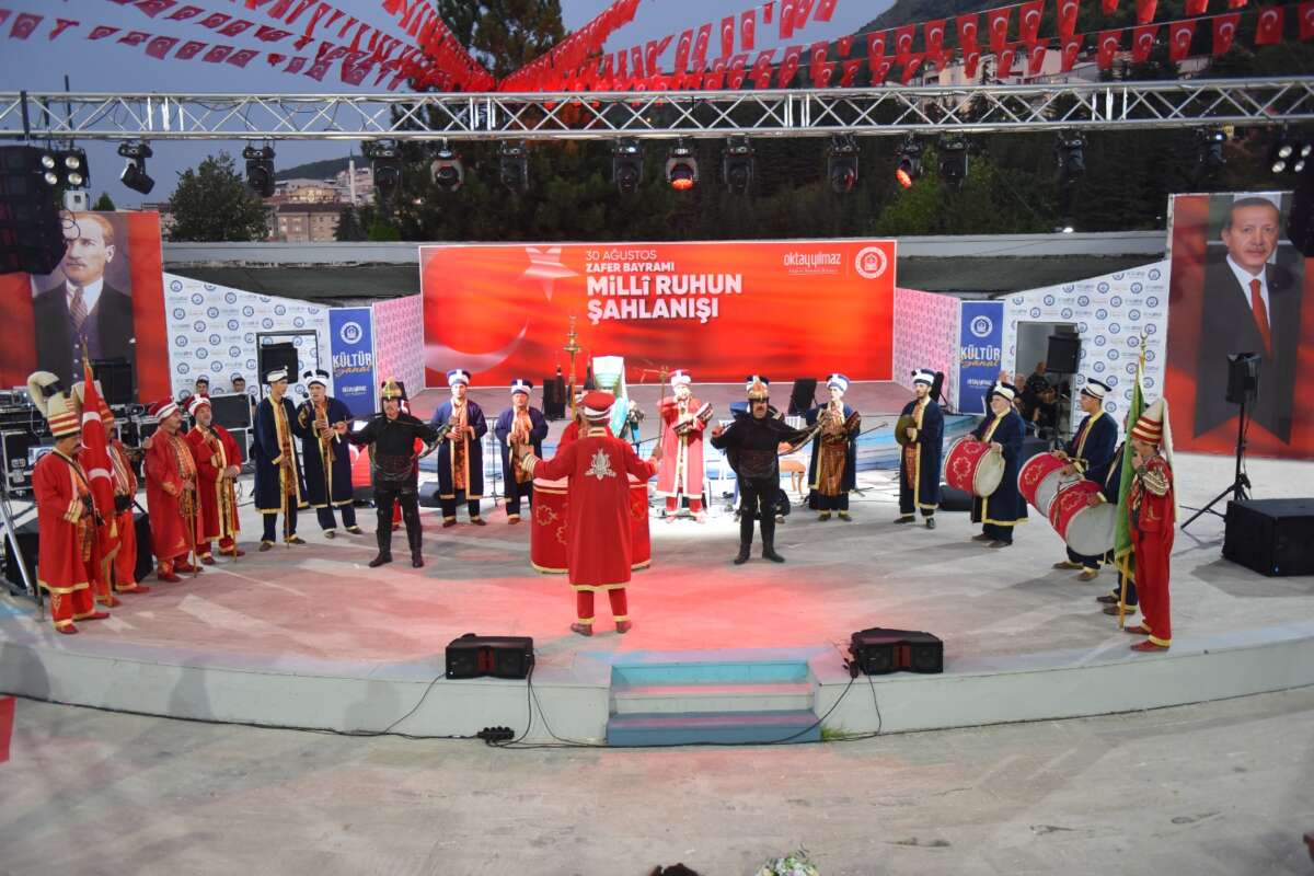 Türk Milleti’nin 30 Ağustos’ta iradesine boyunduruk vurdurmayacağını, istiklal ve istikbaline gölge düşürmeyeceğini bütün dünyaya ilan ettiğini söyleyen Başkan Yılmaz, “Gazi Mustafa Kemal Atatürk’ün sözleriyle 30 Ağustos Zaferi, “Türk Ordusunun, Türk subay ve komuta heyetinin yüksek kudret ve kahramanlığını tarihte bir daha belirleyen çok büyük bir eserdir.’ O gün atalarımızın yaktığı bağımsızlık meşalesi, bugün de aynı inançla, aynı heyecanla yolumuzu aydınlatmaya devam ediyor. Bu duygu ve düşüncelerle Cumhuriyetimizin kurucusu, Büyük Taarruzun Başkomutanı Gazi Mustafa Kemal Atatürk’ü, silah arkadaşlarını, bu toprakları bize vatan kılan tüm kahramanlarımızı, şehitlerimizi ve gazilerimizi rahmet ve minnetle anıyorum” ifadelerini kullandı. Daha sonra sahneye çıkan Türk Halk Müziği Sanatçısı Esat Kabaklı, seslendirdiği kahramanlık türküleriyle unutulmaz bir gece yaşattı.