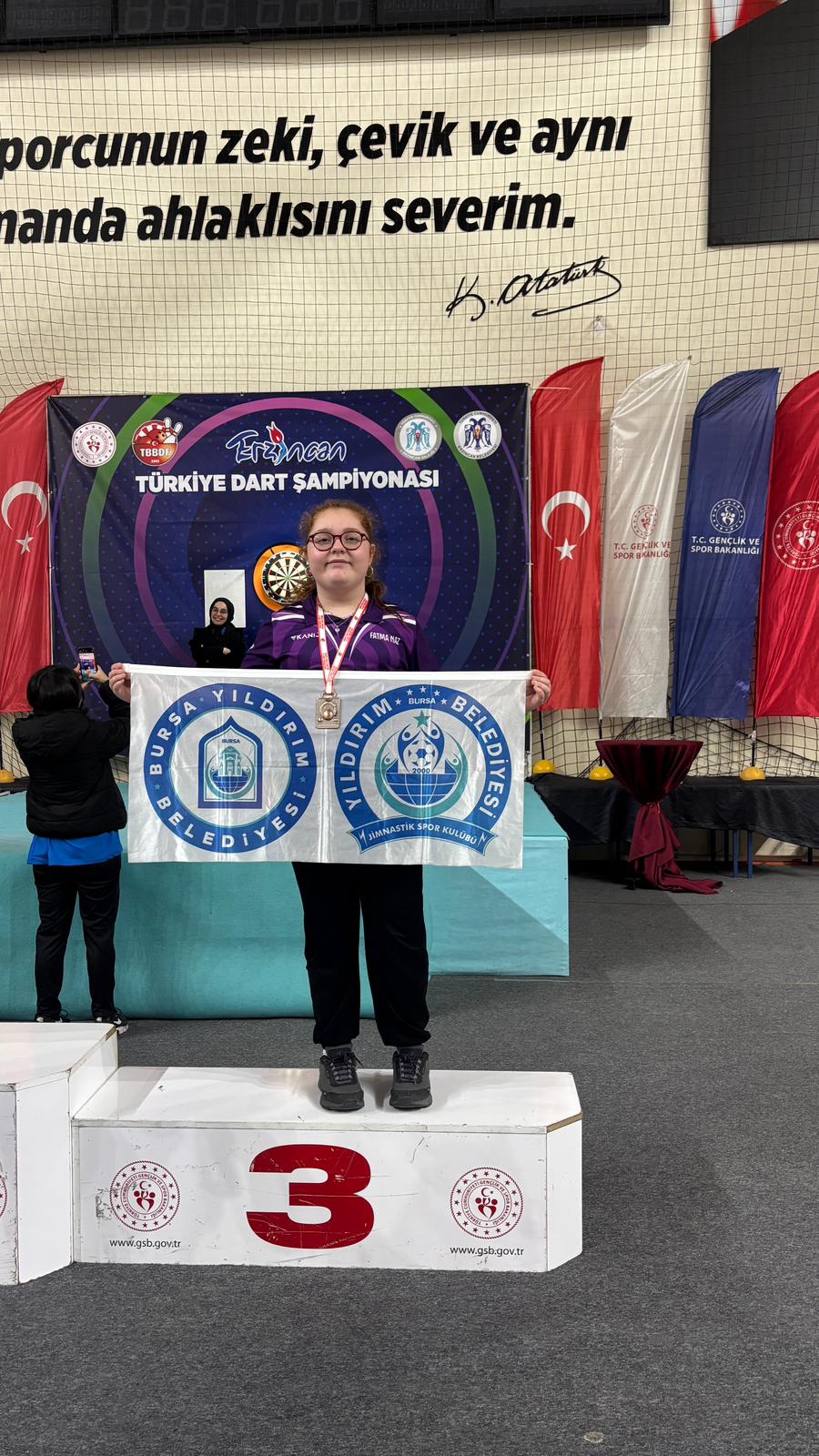 Erzincan’da düzenlenen Şehit Eren Bülbül Türkiye Dart Şampiyonası Sıralama Turları’nda Yıldırımlı sporcular önemli başarılar elde etti. Yusuf Duman antrenörlüğünde şampiyonaya katılan Yıldırım Belediyespor Kulübü sporcuları farklı kategorilerde kürsüye çıkmayı başardı. Büyükler 1. Tur müsabakalarında Toprak Aras Türkiye üçüncüsü olurken, Genç Kızlar 1. Tur’da Sidal Nur Çoban Türkiye ikinciliğini elde etti. Yıldız Erkekler kategorisinde Umut Demircan 1. Tur’da Türkiye ikincisi olurken, Şenol Gül 2. Tur’da yine Türkiye ikinciliği kazandı. Yıldız Kızlar kategorisinde ise Nisa Ateş 2. Tur’da Türkiye ikincisi, Fatma Naz Önder ise aynı turda Türkiye üçüncüsü olarak önemli bir başarıya imza attı.